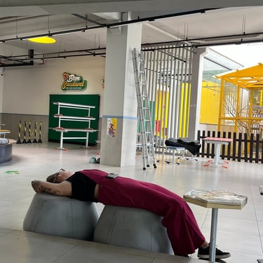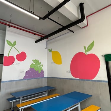Depois dos corredores com letterings coloridos, viemos para a cantina.