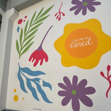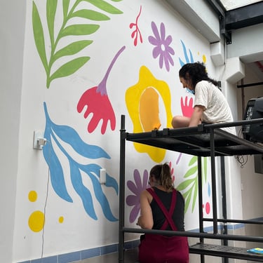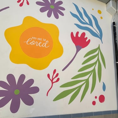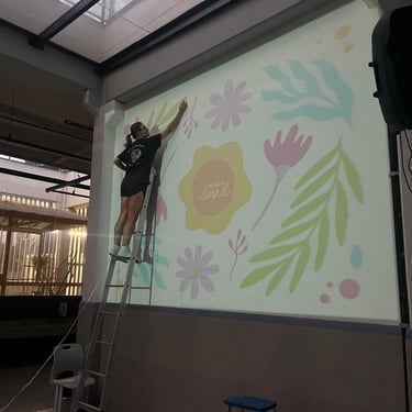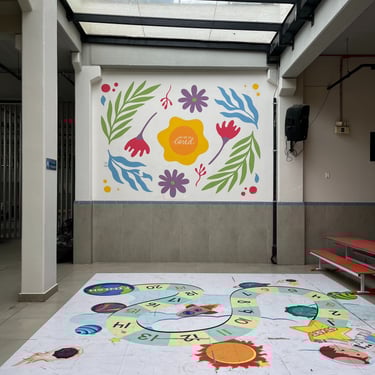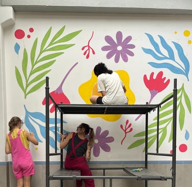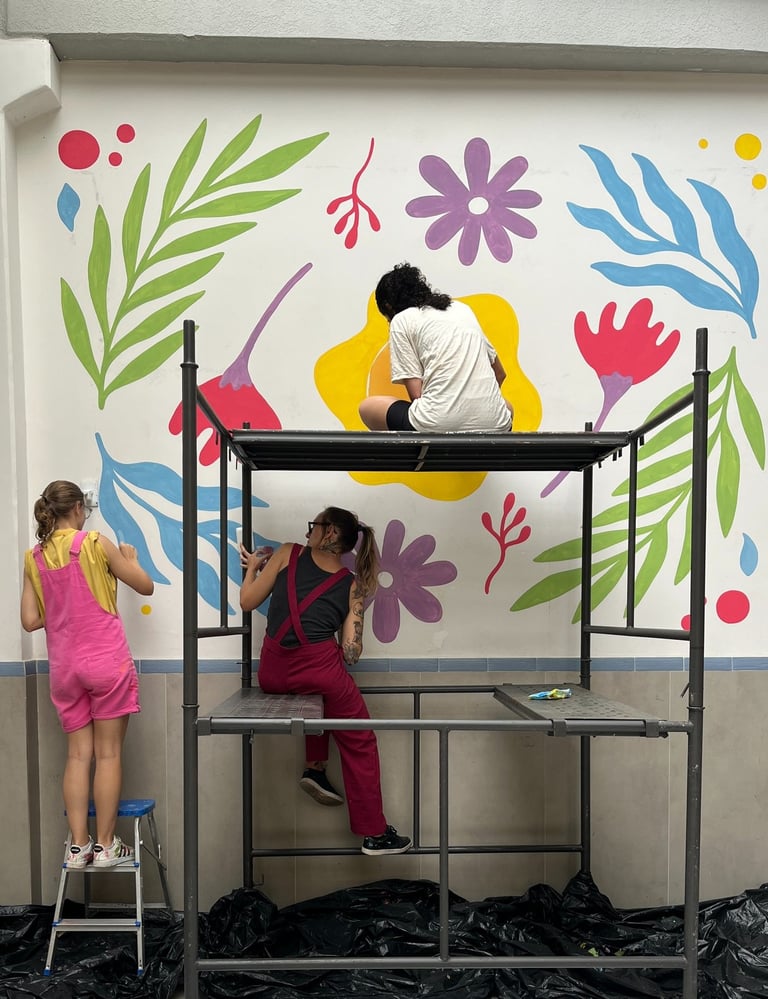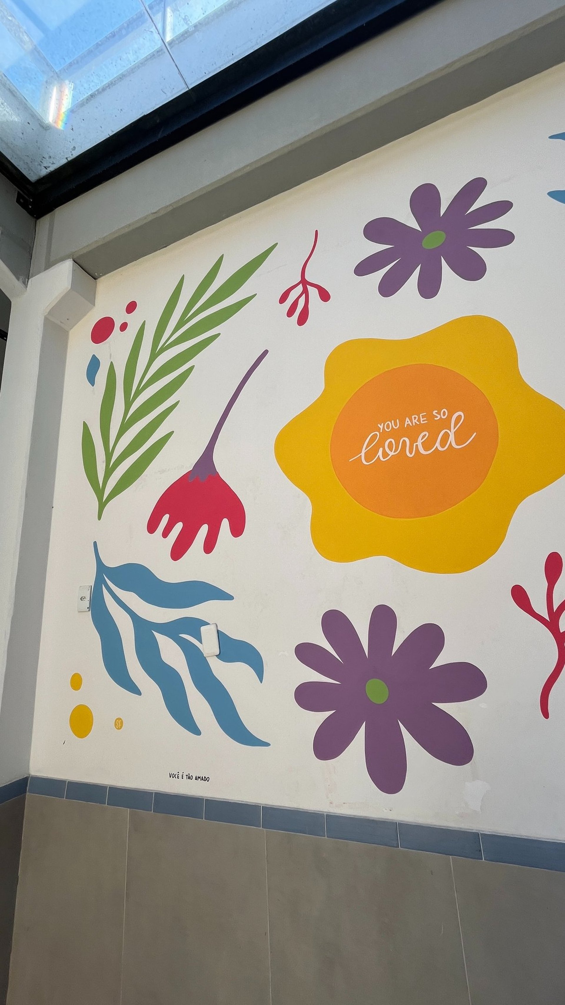 Depois dos letterings no corredor e da cantina, viemos pintar o pátio.