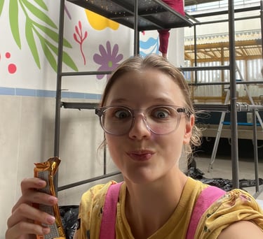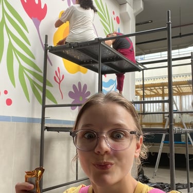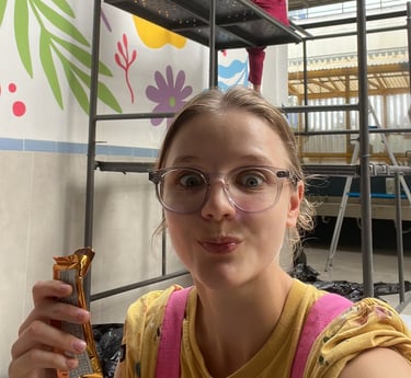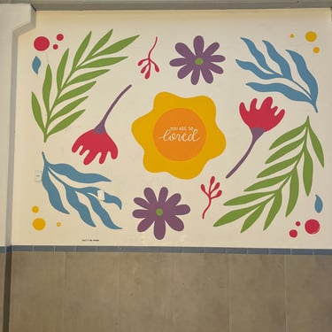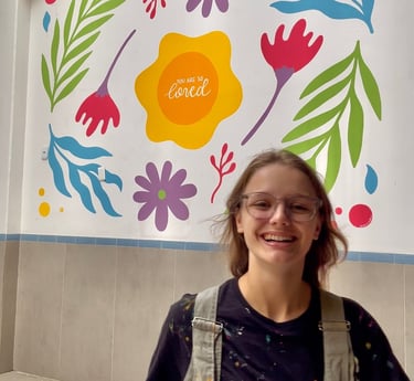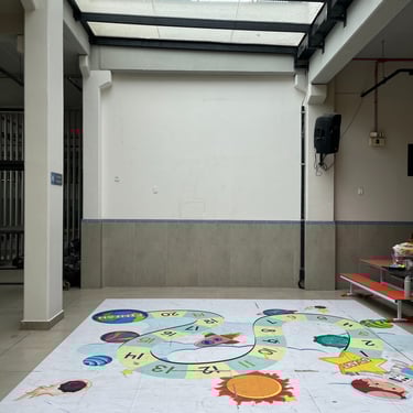Levamos um dia inteiro nessa pintura e foi muito divertido. Após a finalização, fomos para o nosso maior desafio do colégio: a parte inferior das escadarias principais.