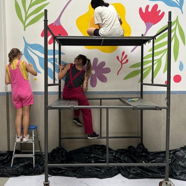 Essa parede era mais alta e cheia de detalhes, então o uso do andaime foi indispensável pra termos mais segurança na hora da pintura lá em cima e claro, para a rapidez do projeto.