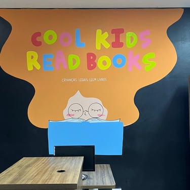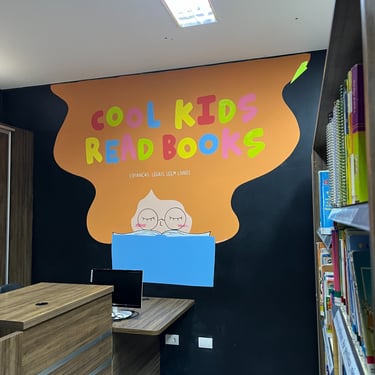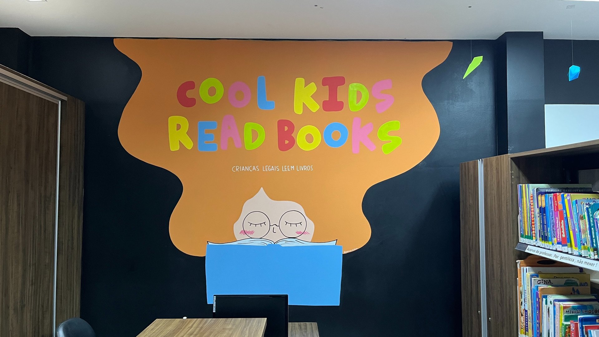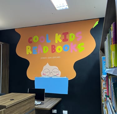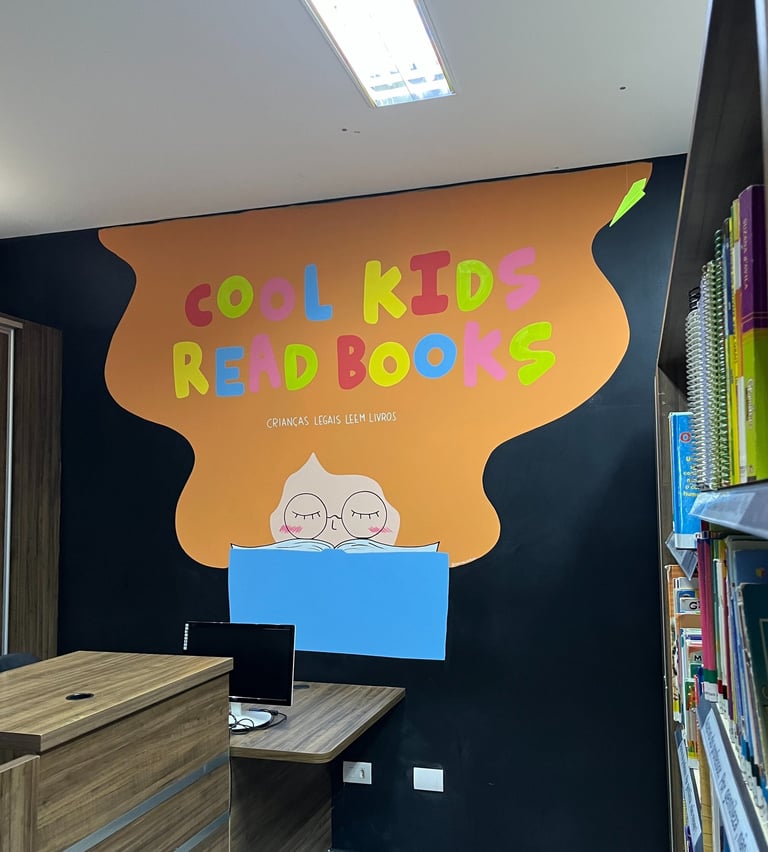 Após as pinturas das oito salas de aula, o colégio me pediu mais duas artes: a biblioteca e a brinquedoteca.