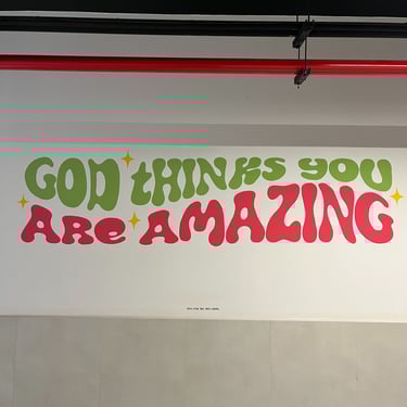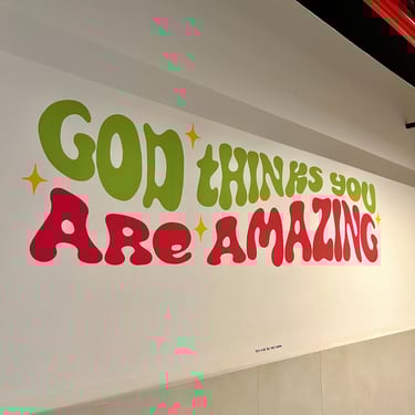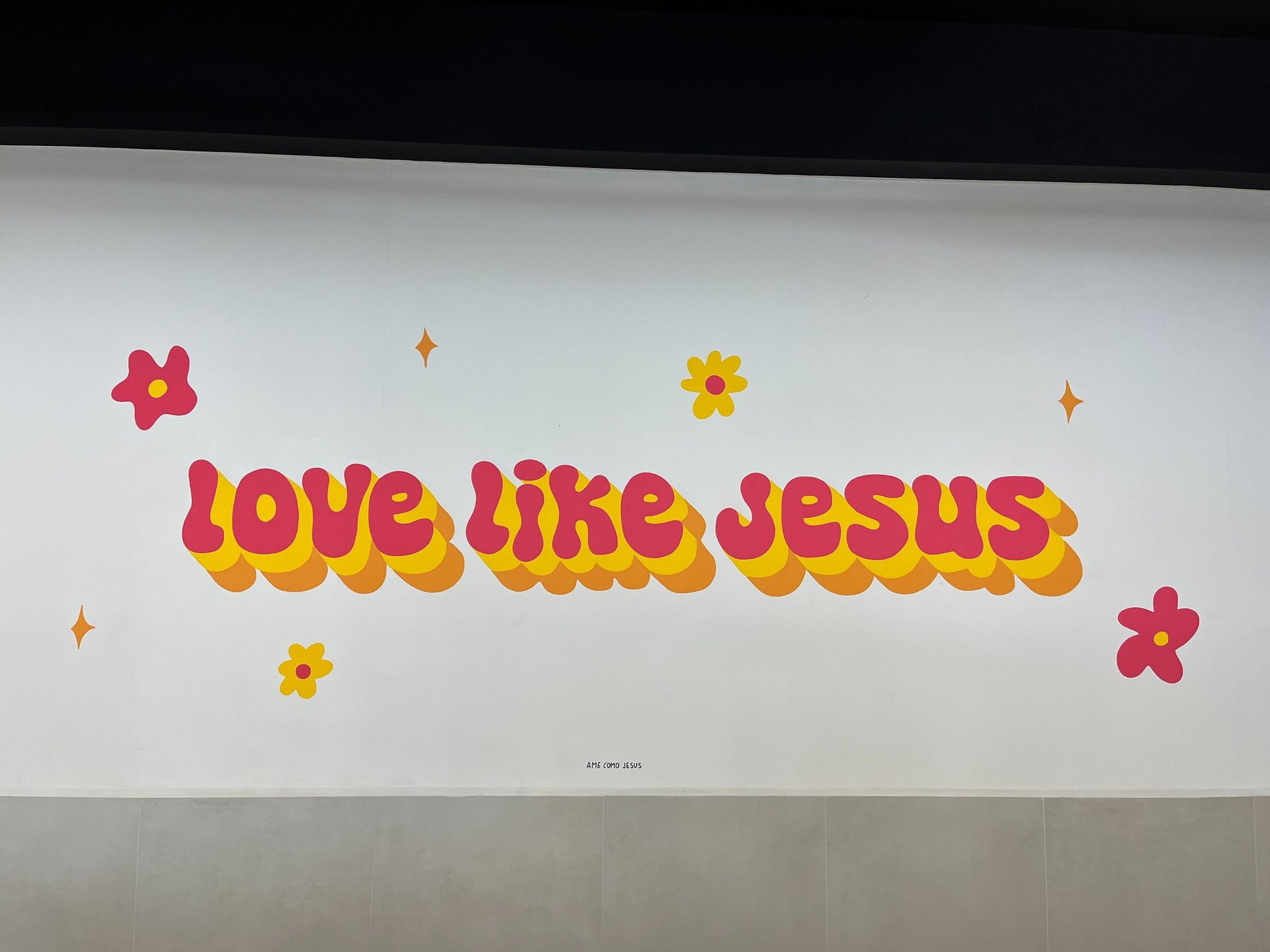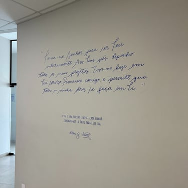 Pra finalizar, colocamos uma citação maior e de estilo mais sóbrio na parede interna para os funcionários.