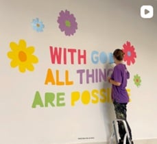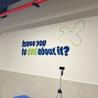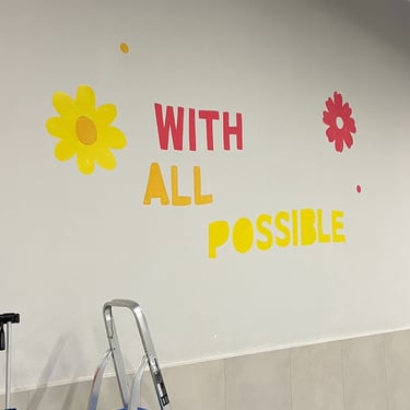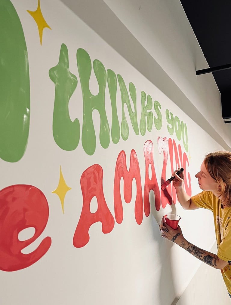 Depois de pintar o refeitório, ganhei mais 6 frases de presente pra pintar! Os corredores estavam bem vazios, então decidimos trazer cor, mas com propósito.