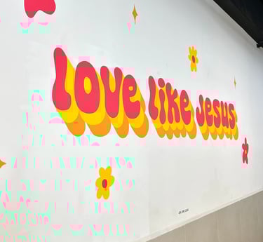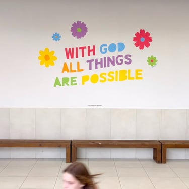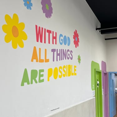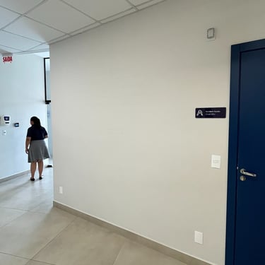 Depois dos corredores, decidimos que a próxima parede seria para os novos alunos, então preenchemos a sala de matrículas. Clica aqui depois que eu te levo lá!