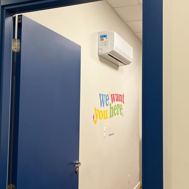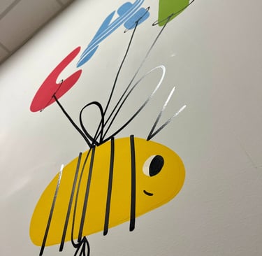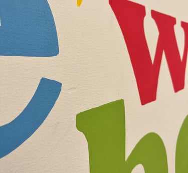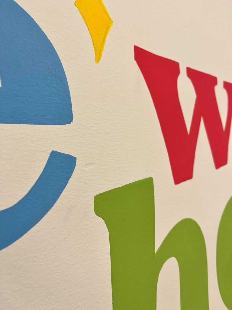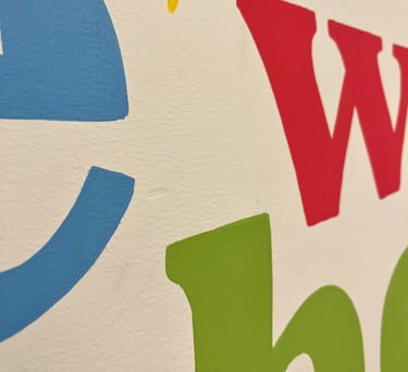 Mais ou menos, na verdade...aqui é território dos novos alunos! Decidimos pintar a sala de matrículas para já ambientar a criança em um ambiente colorido e bilíngue.