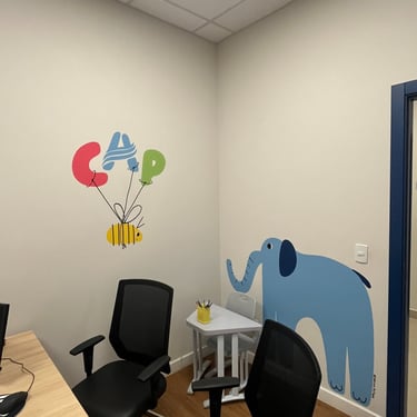 Finalizamos com os animaizinhos no cantinho que a criança fica brincando e se ambientando enquanto a conversa de adulto acontece.