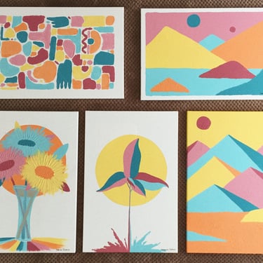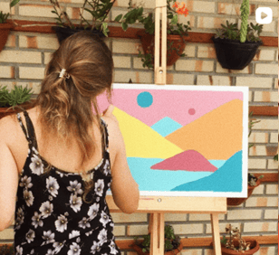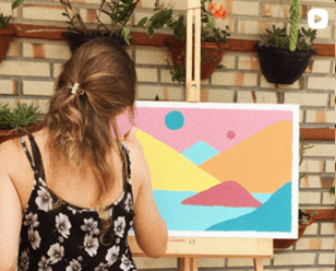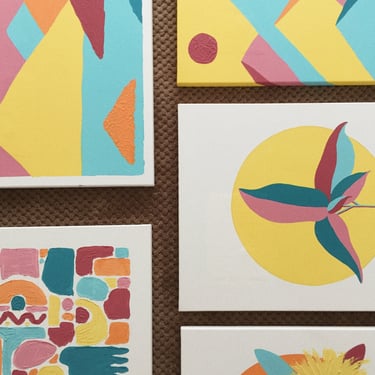 obras: Orange Lake, Sunset, Pink Sky, Sunflower e Life Itself