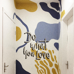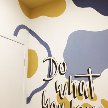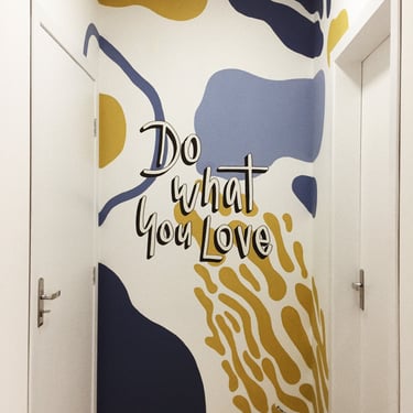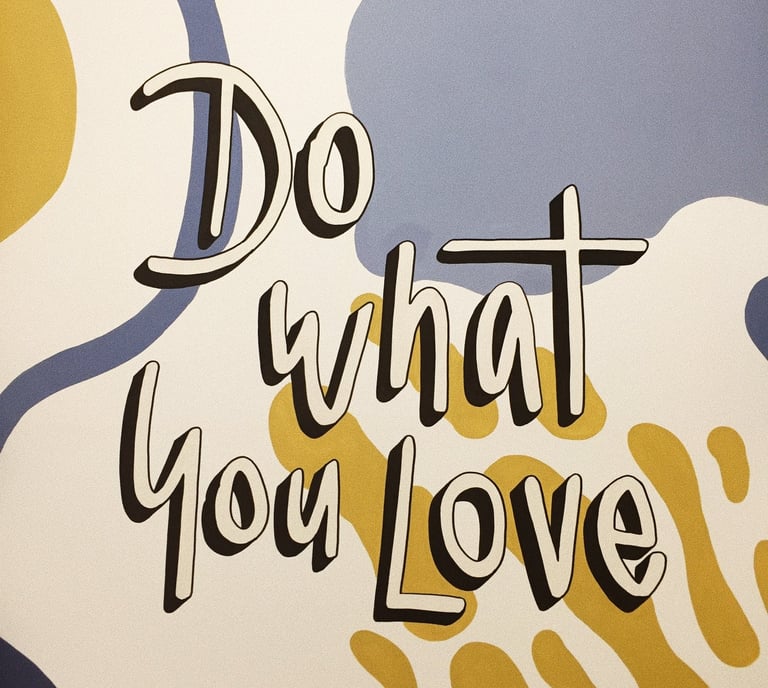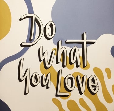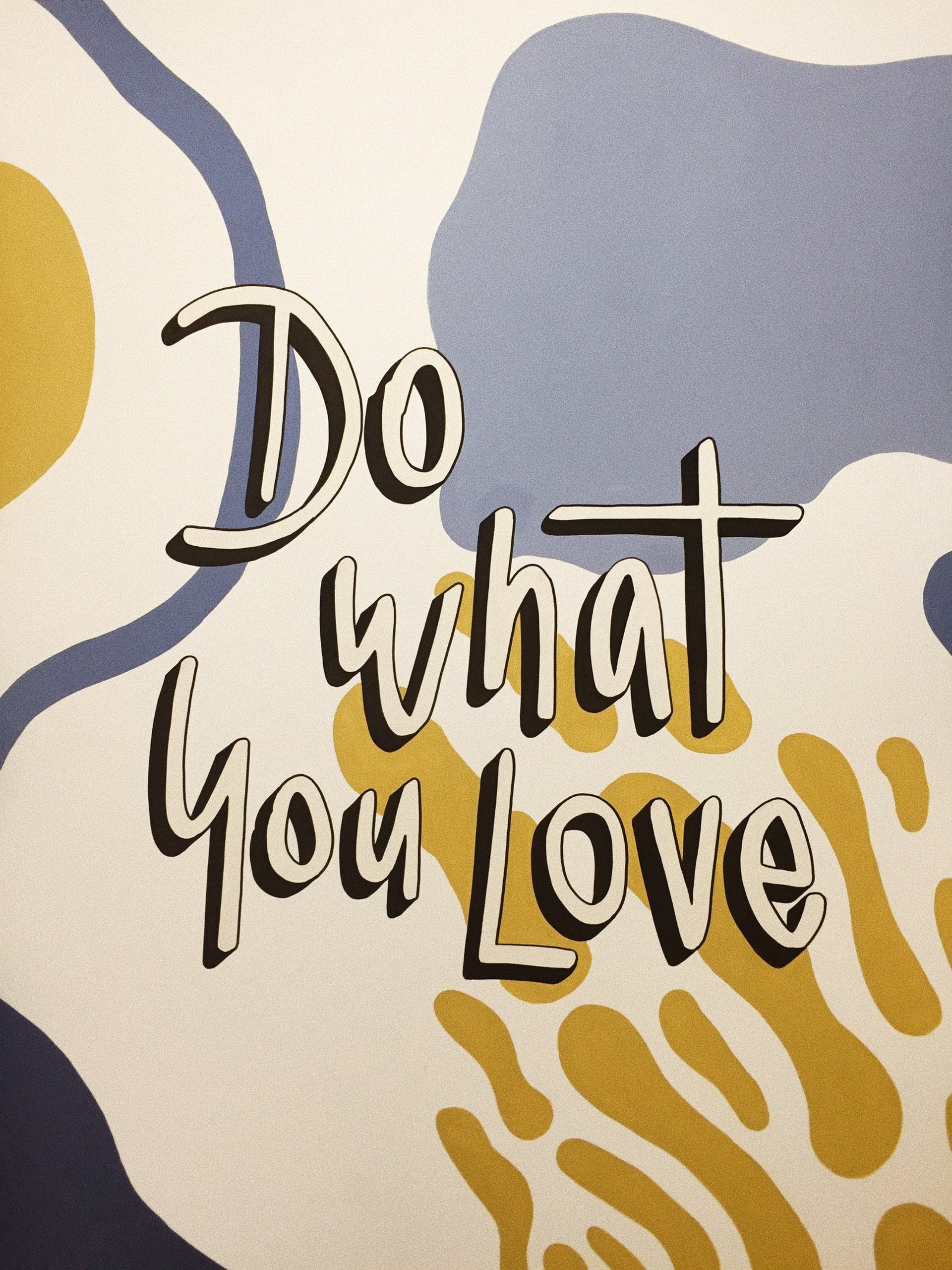 Por isso a frase "Do what you love" pintada na parede, que deixei do design para fazer o que eu amo, pintar paredes :)