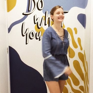 Fui minha primeira cliente e demorei cerca de 30 horas de pintura em uma parede (que hoje, em 2025, julgo ser minúscula hahahah).
