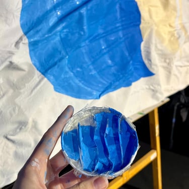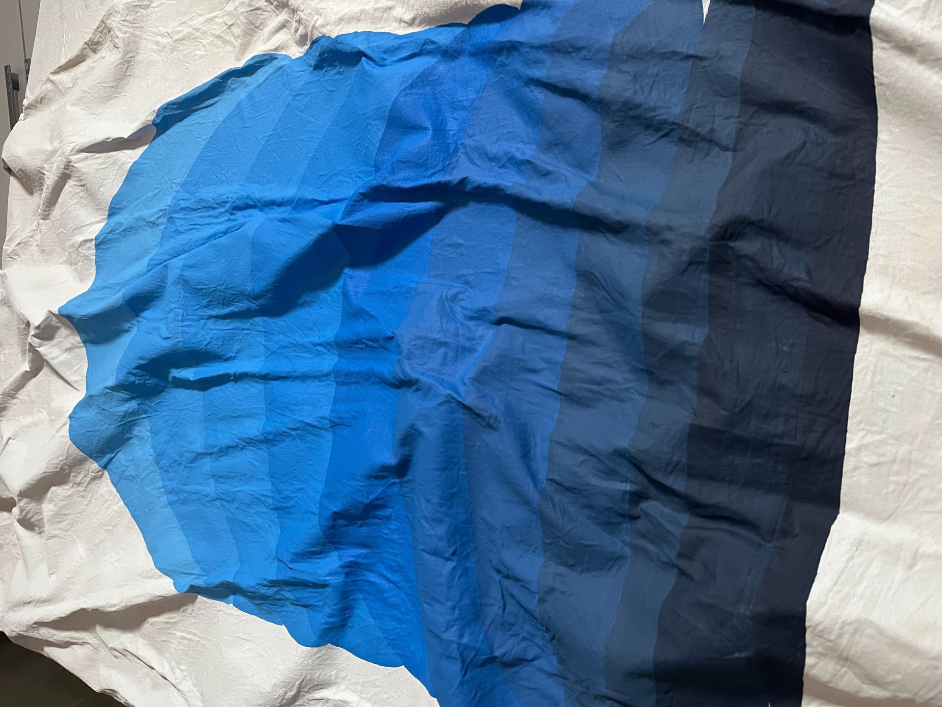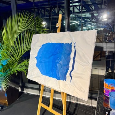 Na criação da textura da base, foi utilizado um tecido 100% algodão tratado com uma mistura de água e cola. Após o endurecimento da trama, uma arte foi esboçada e aprovada pela equipe para o dia da inauguração