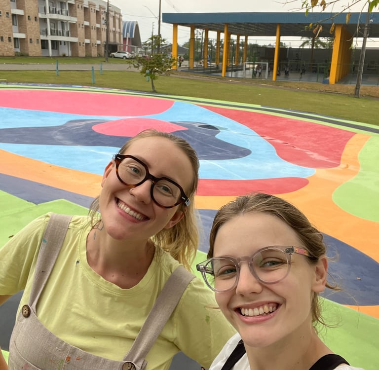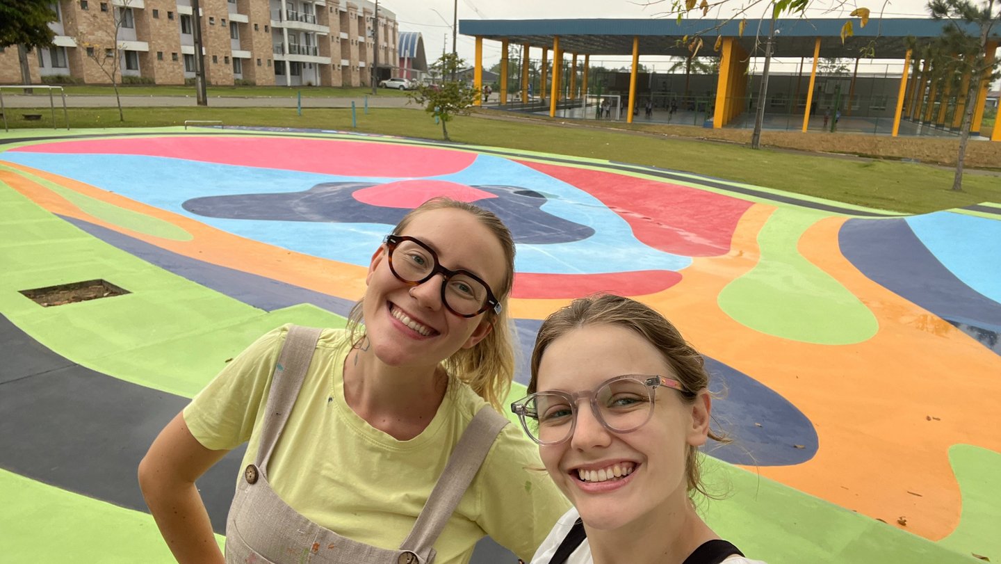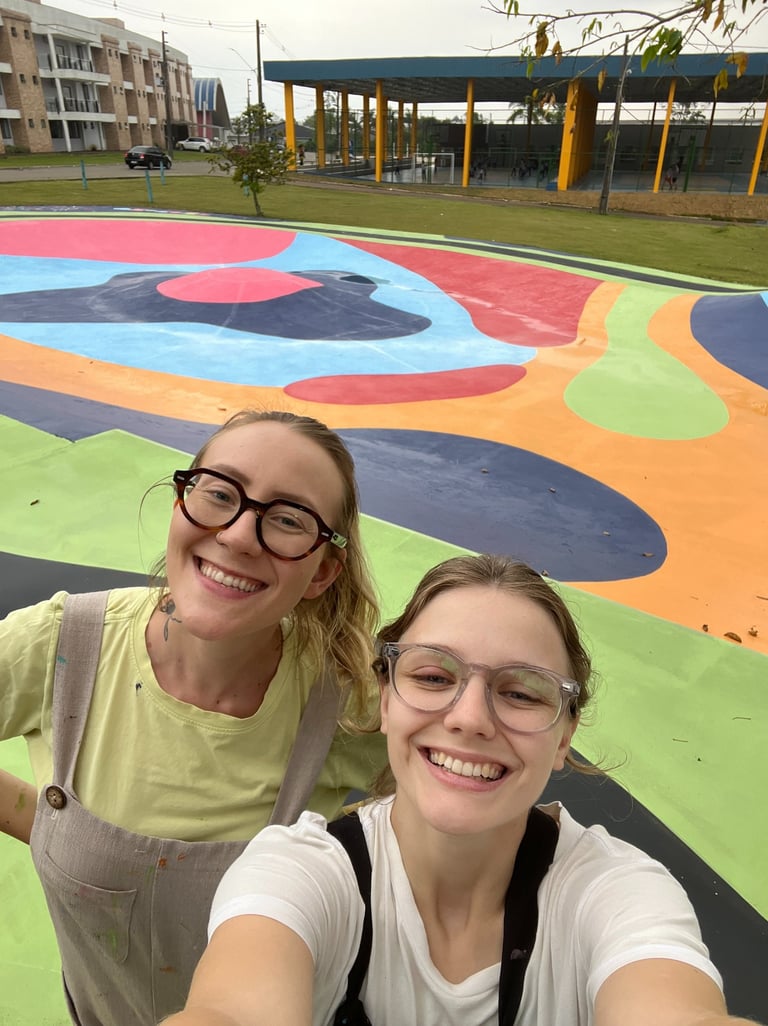 Mas claro que eu dividi esse peso todo com a Helo Arnold, uma artista muralista também residente em Floripa. Foram duas semanas muito cansativas e divertidas, onde dormíamos bem, comíamos comida boa do refeitório e ainda conhecemos muitos estudantes e funcionários do IAESC.