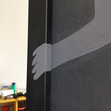 Essa arte foi feita no apartamento do meu irmão, um dos meus primeiros clientes. Ele gostava muito da animação na época e decidimos pintar ela na parede do espelho.