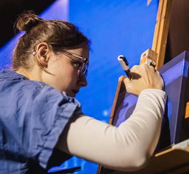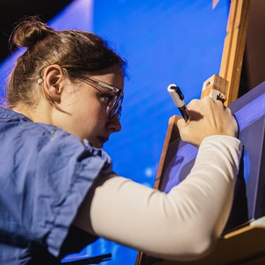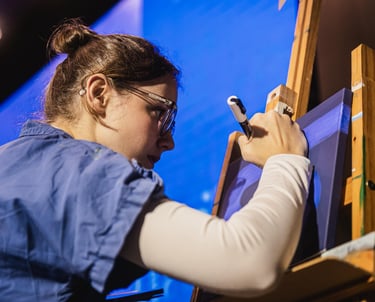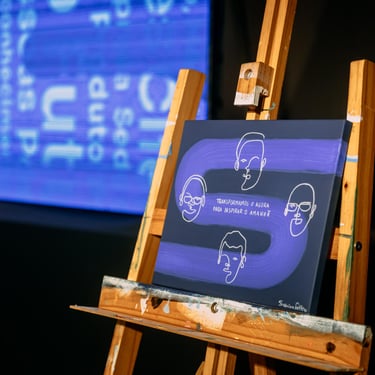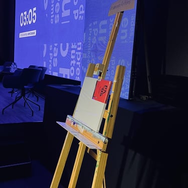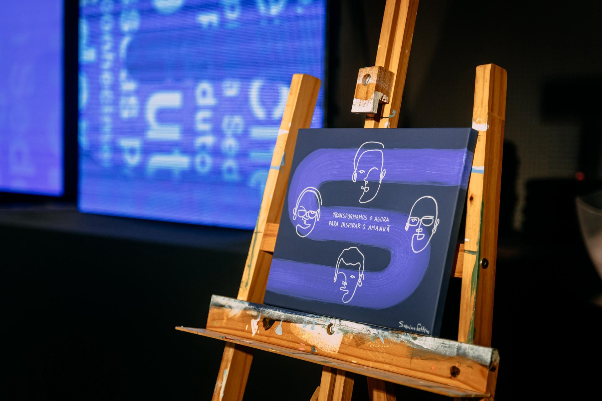 Anos depois, para uma nova etapa da empresa, fui convidada para pintar ao vivo no evento.