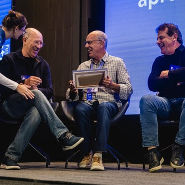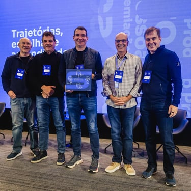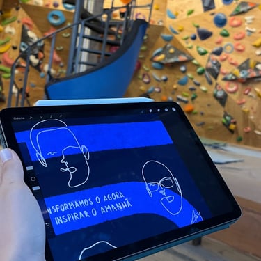 Inspirada nos sócios da empresa, adicionamos o "S" de fundo nas cores da identidade visual e uma frase que inspira os próximos passos.