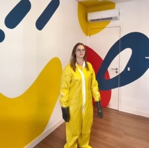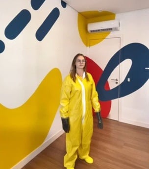 ”Não poderíamos ter escolhido artista mais incrível pra colorir o quartinho do Vitório ou da Ella ♥️ obrigada demais!”